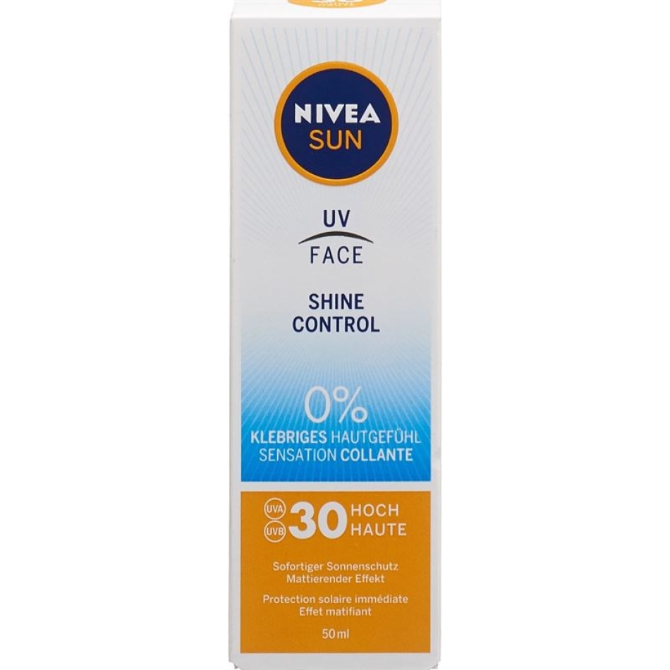 Die Nivea Sun UV Face Shine Control Sonnencreme mit LSF 30 kombiniert einen zuverlässigen Schutz vor UV-Strahlen mit einem mattierenden Effekt. Die leichte Formel spendet intensiv Feuchtigkeit und hinterlässt keine Rückstände oder ein fettiges Hautgefühl.