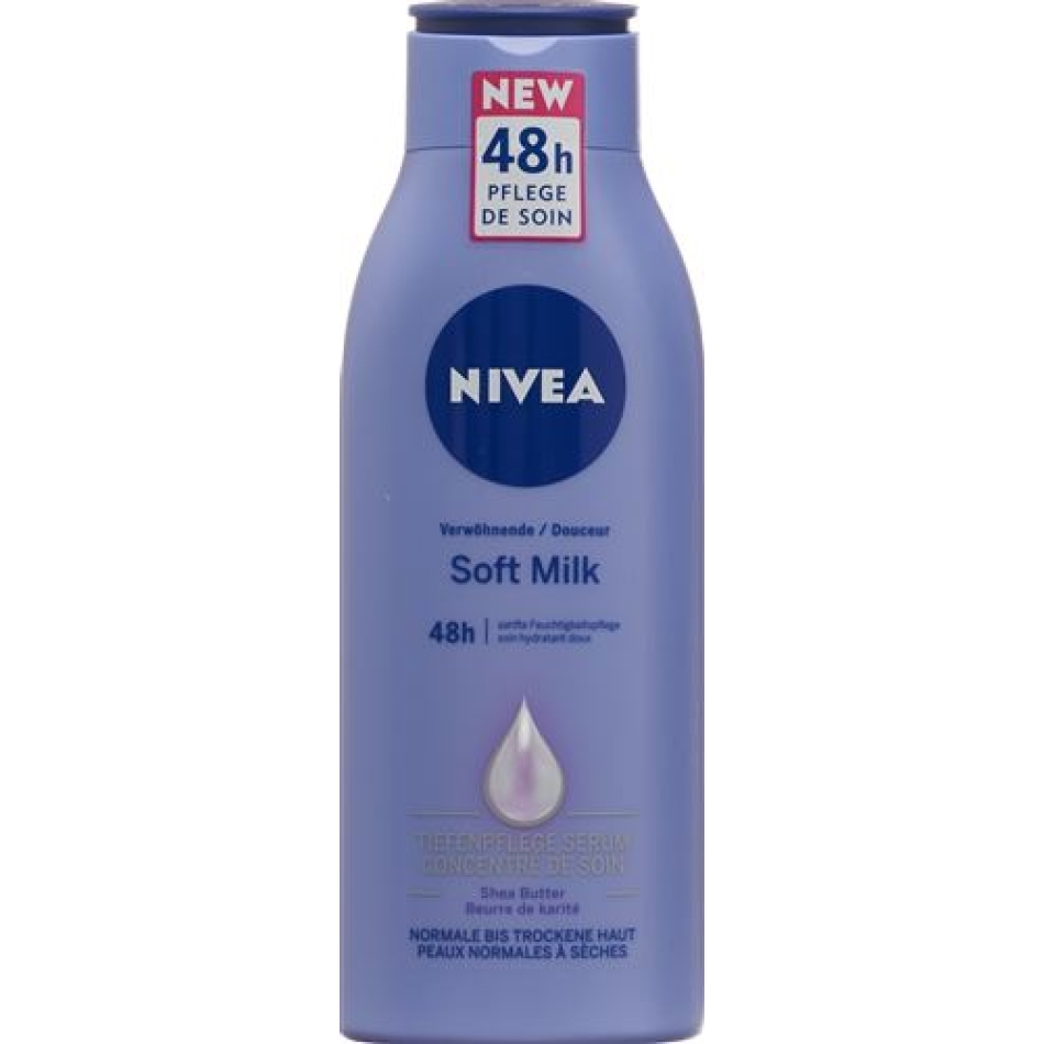 Die cremig-zarte Hautpflege der Nivea Verwöhnende Soft Milk gibt Ihnen ein samtweiches Hautgefühl.